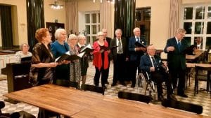Sirpaleet-kuoro viihdytti lauantaina illallisen aikaan, pianon takana kuoronjohtaja Kaisa Pärnänen (kuva Eila Hirvonen).