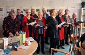 Aluksi hiljennyimme kuulemaan Hannun lukemaa Jouluevankeliumia (Luukkaan mukaan). Pikkujoulut jatkuivat kuoromme Sirpaleiden esittämillä lauluilla sekä tietysti laulamalla yhdessä tuttuja joululauluja. Anja Anttila lausui P Mustapään kirjoittaman joulurunon ”Puer natus in Betlehem”. Puuron ja kahvittelun aikana kävi kova puheensorina, kun ystävät ja tutut tapasivat toisensa.