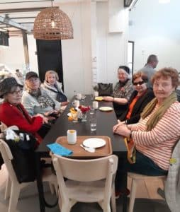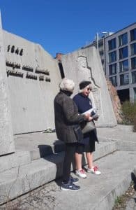Perinteiseen tapaan muistomerkki kukitettiin äitienpäivän aattona. Ritva Aarne ja Arja Mäntsälä lausuivat sotaorpo Eeva Kontiokarin runon ”Rantahiekassa lapsen jäljet”. Kukkatervehdyksen jälkeen kahvi maistui Hakaniemen remontoidussa hallissa. Kuvat Helvi Lehtisalo.