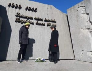 Perinteiseen tapaan muistomerkki kukitettiin äitienpäivän aattona. Ritva Aarne ja Arja Mäntsälä lausuivat sotaorpo Eeva Kontiokarin runon ”Rantahiekassa lapsen jäljet”. Kukkatervehdyksen jälkeen kahvi maistui Hakaniemen remontoidussa hallissa. Kuvat Helvi Lehtisalo.